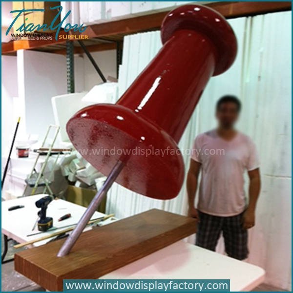 Giant Hand Made Red Fiberglass Pushpin Craft Display,professional window display props supplier in China,provide a completed solution for store window display.
